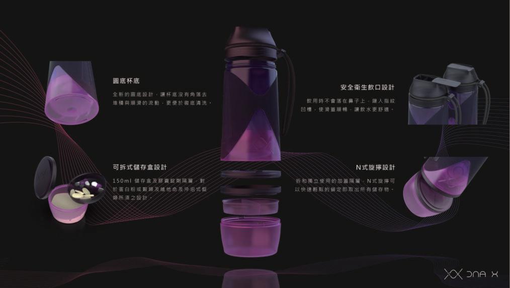 - Program Rhino 3D / Keyshot / Photoshop - Type 產品設計 / 通用設計 - Year 2021 ·· ·· DNA-X HyperBottle DNA-X 2021新一代設計 金點新秀贊助特別獎 入圍