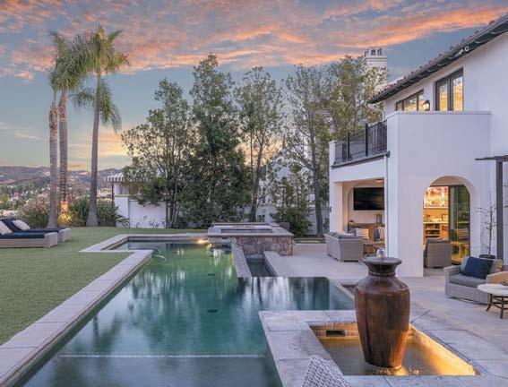 This extraordinary Mediterranean estate is nestled in one of Southern California’s most prestigious guard-gated communities: The Oaks of Calabasas. Celebrated for its exclusivity, security, and resortlike atmosphere, The Oaks offers an elite lifestyle with amenities and privacy reserved for the most discerning homeowners. Privately situated at the end of a tranquil cul-de-sac, this estate rests on an expansive, over half-acre lot. With approximately 6,480 square feet of living space, the home features 5 spacious ensuite bedrooms and an adaptable floor plan designed for modern living. Upon entry, you’re welcomed by warm architectural detail, elegant archways, and curated finishes that reflect timeless Mediterranean charm. Upstairs, the primary suite is a private sanctuary, accessed through a quiet foyer and highlighted by a fireplace and a covered veranda overlooking the lush grounds. The spa-inspired primary bath features an oversized shower, soaking tub, designer window treatments, and exquisite custom lighting. Additional amenities include a spacious loft ideal for a secondary family room or office, a state-of-the-art home theater, game room and gym, The resortstyle backyard is designed for grand entertaining and peaceful relaxation alike with a sparkling pool and spa, built-in BBQ, covered patio lounge, and a full-size sport court, all surrounded by mature landscaping and manicured lawns.