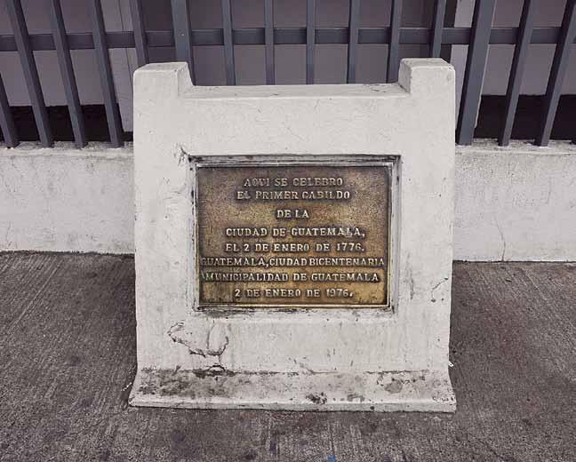 Placa situada en la zona 6, que conmemora el primer cabildo celebrado el 2 de enero de 1776.