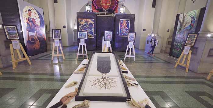 Leyendas guatemaltecas sobre el origen del maíz es el nombre de la exposición de arte inaugurada ayer en el Palacio Nacional de la Cultura, por parte de las autoridades de los ministerios de Cultura, Liwi Grazioso, y de Agricultura, Mynor Estrada, en conmemoración del Día Nacional del Maíz. Esta muestra forma parte de las actividades que se realizan en el país para promover la protección, conservación, estudio y valorización de este grano, símbolo de identidad cultural y seguridad alimentaria de los guatemaltecos. Las obras permanecerán expuestas hasta el viernes 16 de agosto. • Josselinne Santizo
