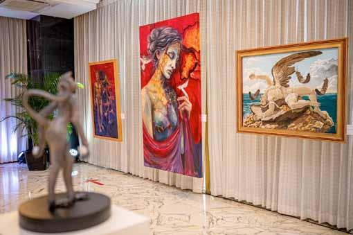 Entre los lienzos expuestos se presentan diversas técnicas como al acrílico, óleo, acuarela y mixto.