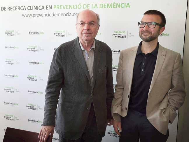 Los doctores José Luis Molinuevo (d) y Jordi Camí (i), de la Fundación Pasqual Maragall, investigadores de la enfermedad, durante la presentación en 2018 de un proyecto, pionero en el mundo, centrado en la prevención de la demencia en personas que presentan quejas subjetivas de memoria y que aún no han sido diagnosticadas.