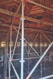 Subimos a la terraza y desde allí pudimos apreciar el esqueleto de madera y las nuevas vigas que sostienen el techo exterior y el labrado cielo falso. Fue sobrecogedor ver algo que usualmente está escondido de los ojos de los mortales que visitan las exposiciones temporales y permanentes. El complicado entramado fue un logro de ingeniería excepcional. Sin embargo, la polilla, enemiga de la madera, se enfocó en lo suyo y casi se lo trae al suelo.