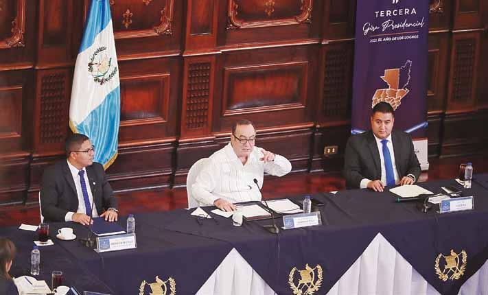de a Q3914.89 millones. Duran te el encuentro con alcaldes de Ja lapa, se revisaron los 12 compro misos presidenciales y las 147 so licitudes de las comunas, para un total de 159 acciones.