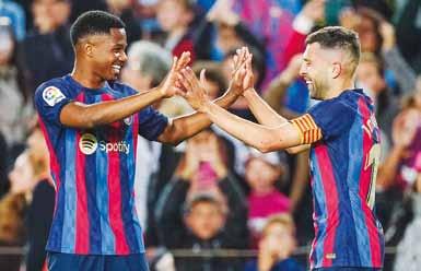 Ansu Fati y Jordi Alba celebran el tanto en el minuto 88, que le dio la victoria al cuadro catalán.