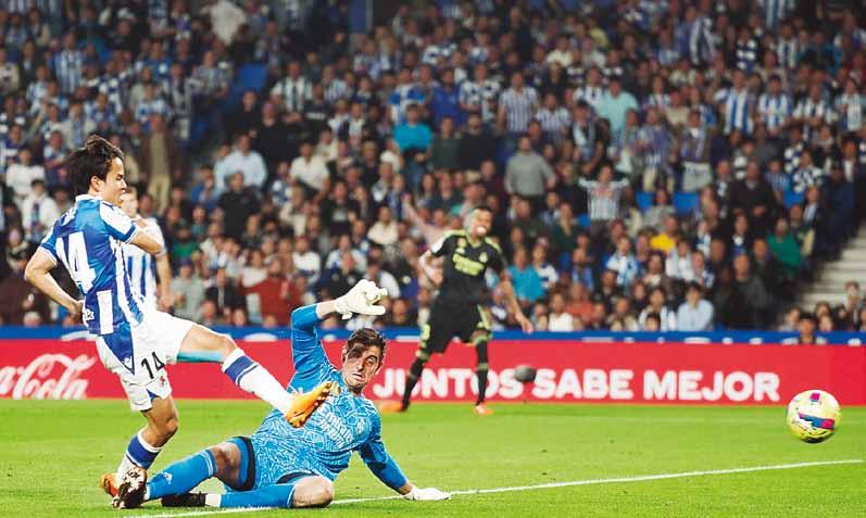 en una peligrosa cesión a Courtois cortocircuitada por el nipón Kubo, adelantándose al portero belga para abrir el marcador con mucha convicción.