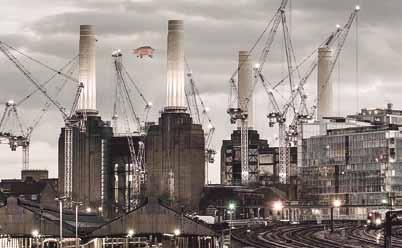 neas de la central eléctrica de Batter sea, concebido por Waters y diseña do por Storm Thorgerson, colabo rador de muchos años de Hipgno sis Studios. Aubrey Po Powell lo re diseñó y expresó: “Tuve la oportuni dad de actualizarla, mediante el uso de técnicas modernas de coloración digital mantuve el mensaje sombrío de decadencia moral de Pink Floyd al utilizar los temas orwellianos de animales”.