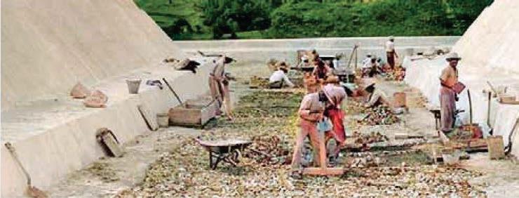 Trabajadores excavaron para descubrir el juego de pelota a finales de la década de 1940.
