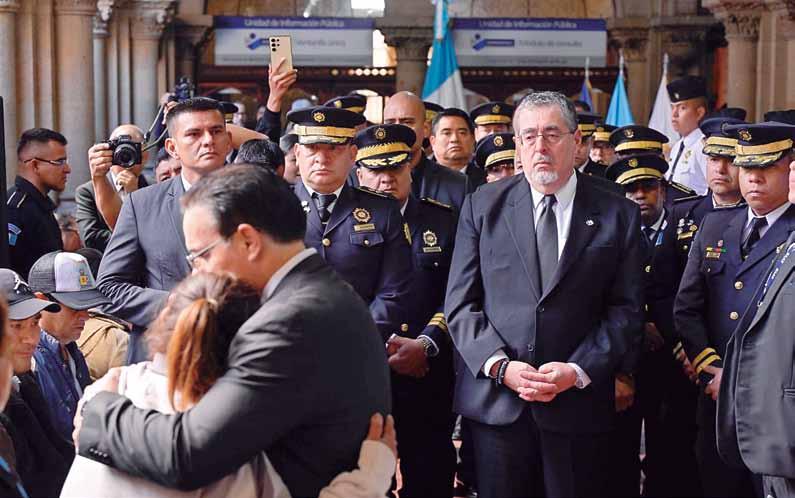 “Que no quepa duda de que no vamos a descansar y escatimar recursos para castigar, perseguir y encontrar a los responsables de estos crímenes”, afirmó el presidente Bernardo Arévalo, durante las honras fúnebres rendidas a los agentes de la Policía Nacional Civil (PNC) que fueron asesinados por integrantes de la pandilla del Barrio 18