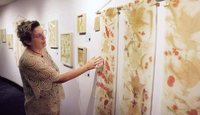 Ermi labora la técnica de Ecoprint o impresión botánica en textiles naturales como el chifón que es una seda muy fina y transparente; en muselina, un tejido fino y ligero de algodón, traído de España. “En todas he utilizado para imprimir plantas recolectadas en Guatemala, como son el pericón, el maple, la verónica, la margarita silvestre, el eucalipto, recogidos, la mayoría, por los caminos”, confesó.
