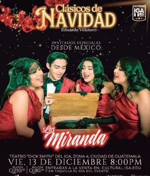 En otro show, Villatoro estará acompañado además de 30 músicos en escena, junto a Los Miranda, en el Teatro Dick Smith del IGA, zona 4, el 13 de diciembre, a las 20:00. El costo es de platea, 250 quetzales y balcón, 180.