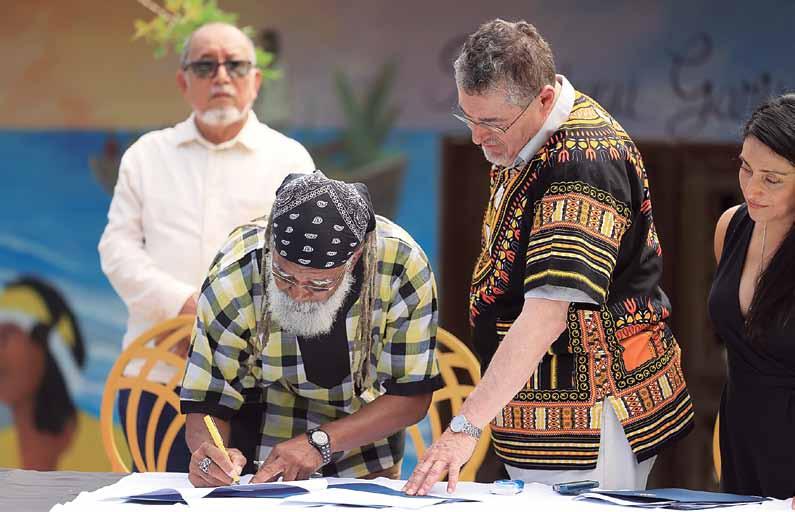 Durante su visita a Livingston, Izabal, el jefe de Estado firmó el noveno acuerdo de trabajo con pueblos originarios, el que le permitirá al Ejecutivo orientar las políticas públicas que impulsen la prosperidad general de los connacionales. La rúbrica del documento coincidió con los 222 años de lucha de la población garífuna.