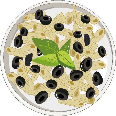 Reparte esta preparación en 4 platos llanos, rocíala con el aceite de albahaca, añade las aceitunas y sírvela enseguida decorada con las virutas de queso parmesano.
