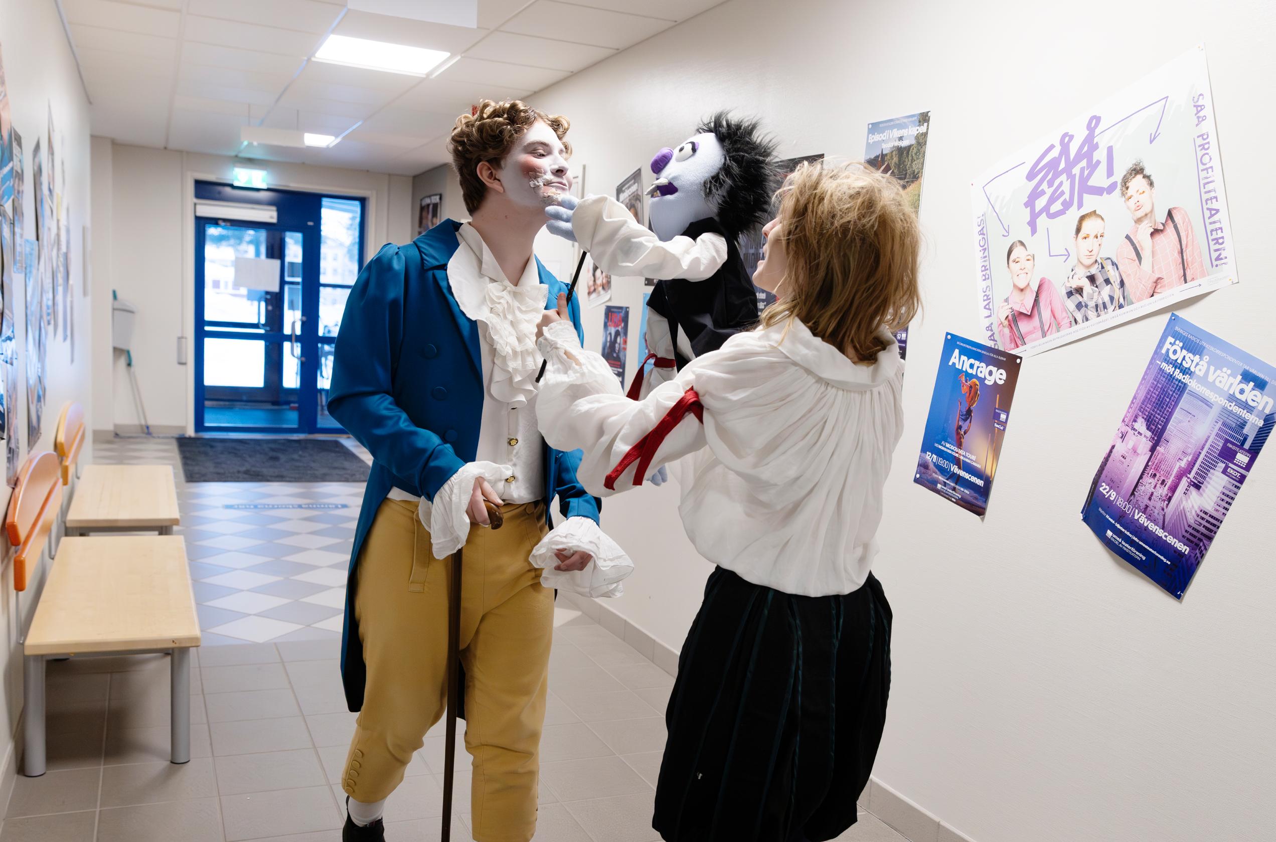 Här finns ölsejdlar, skjutvapen, fåtöljer, rokokorockar i bävernylon och en sektion för punkkläder – tusentals prylar och plagg. Allting utgör Riksteaterns kostym- och rekvisitaförråd i Hallunda. Här är Malin Eriksson övergripande ansvarig och har till sin hjälp Karin Habolin, som är ansvarig för rekvisitaförråden, och Nina Stenmark som ansvarar för kostym med tillhörande förråd. På enheten finns även fem tillsvidareanställda turnerande kostym- och rekvisitatekniker samt mellan två och nio frilansande tekniker per säsong. Malin beskriver enheten som kostymdesignerns och scenografens förlängda arm, som ska förvalta deras del av berättelsen.