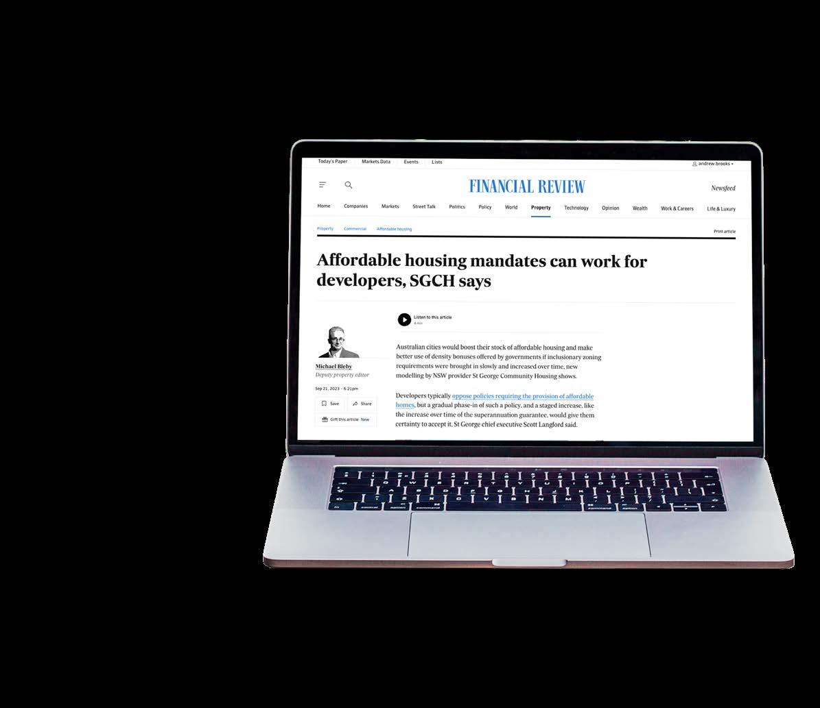 This year SGCH welcomed the Federal Government’s $10 billion Housing Australia Future Fund Facility and National Housing Accord Facility. This is a game-changing program and we encourage its mission to create more than 40,000 new homes at this critical