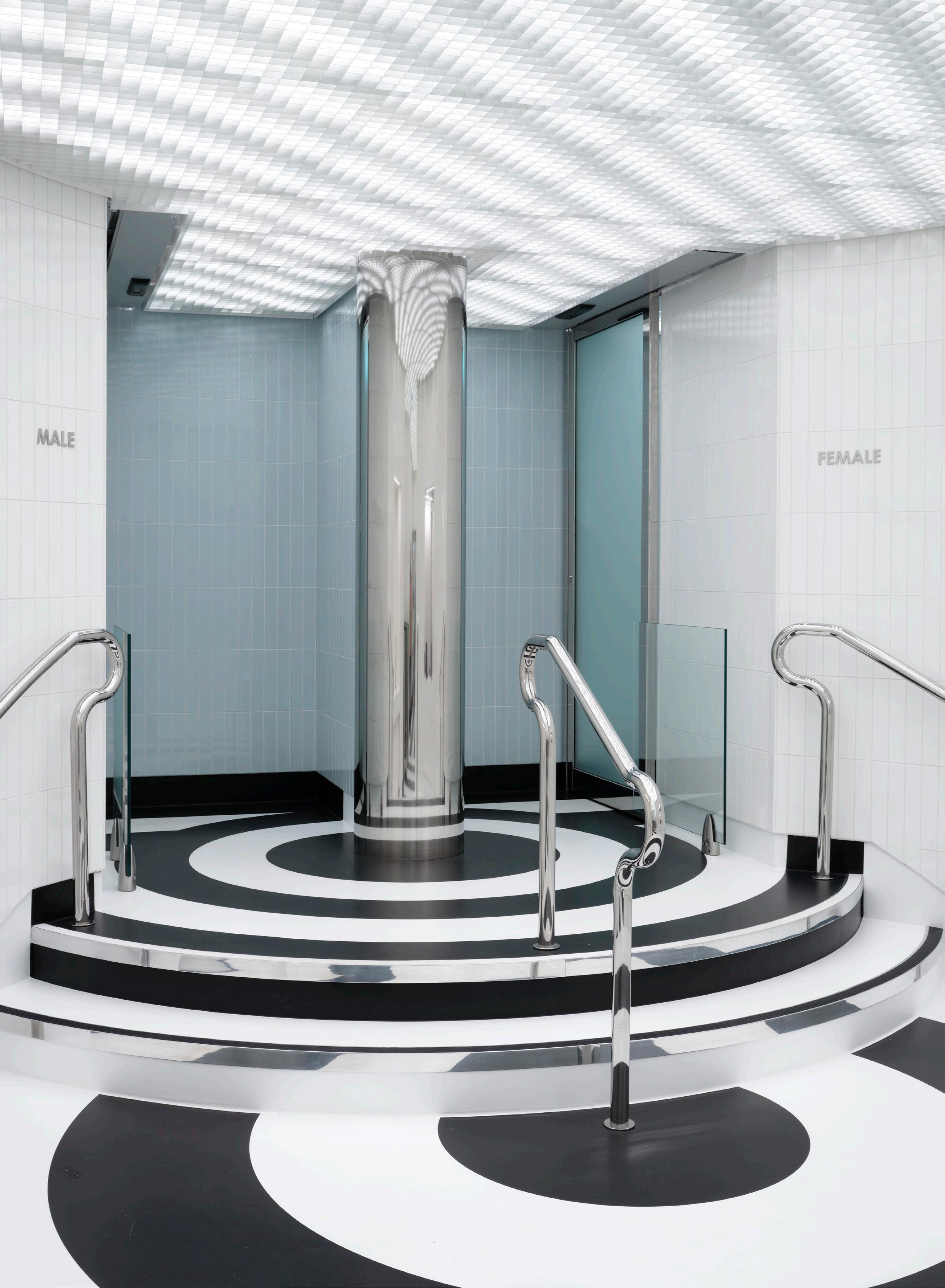 O design da exposição interpreta o edifício como um espaço urbano, promovendo a abertura e o intercâmbio. Com 5000 m², os 71 espaços de galeria são complementados por áreas abertas que incentivam a exploração, descoberta e comunidade. Adoptando um sistema radical que define uma estrutura clara, o design desafia a encapsulação típica dos layouts de feiras de arte. Em vez de caixas convencionais, paredes simples com acabamentos mínimos delineiam os estandes, exibindo as obras de arte. Luzes de néon e paredes mínimas permanecem como elementos principais, sublinhando a integridade histórica do edifício, enquanto introduzem elementos modernos que melhoram a exibição e a apreciação da arte. O resultado é uma fusão ousada onde o passado dialoga com o presente.