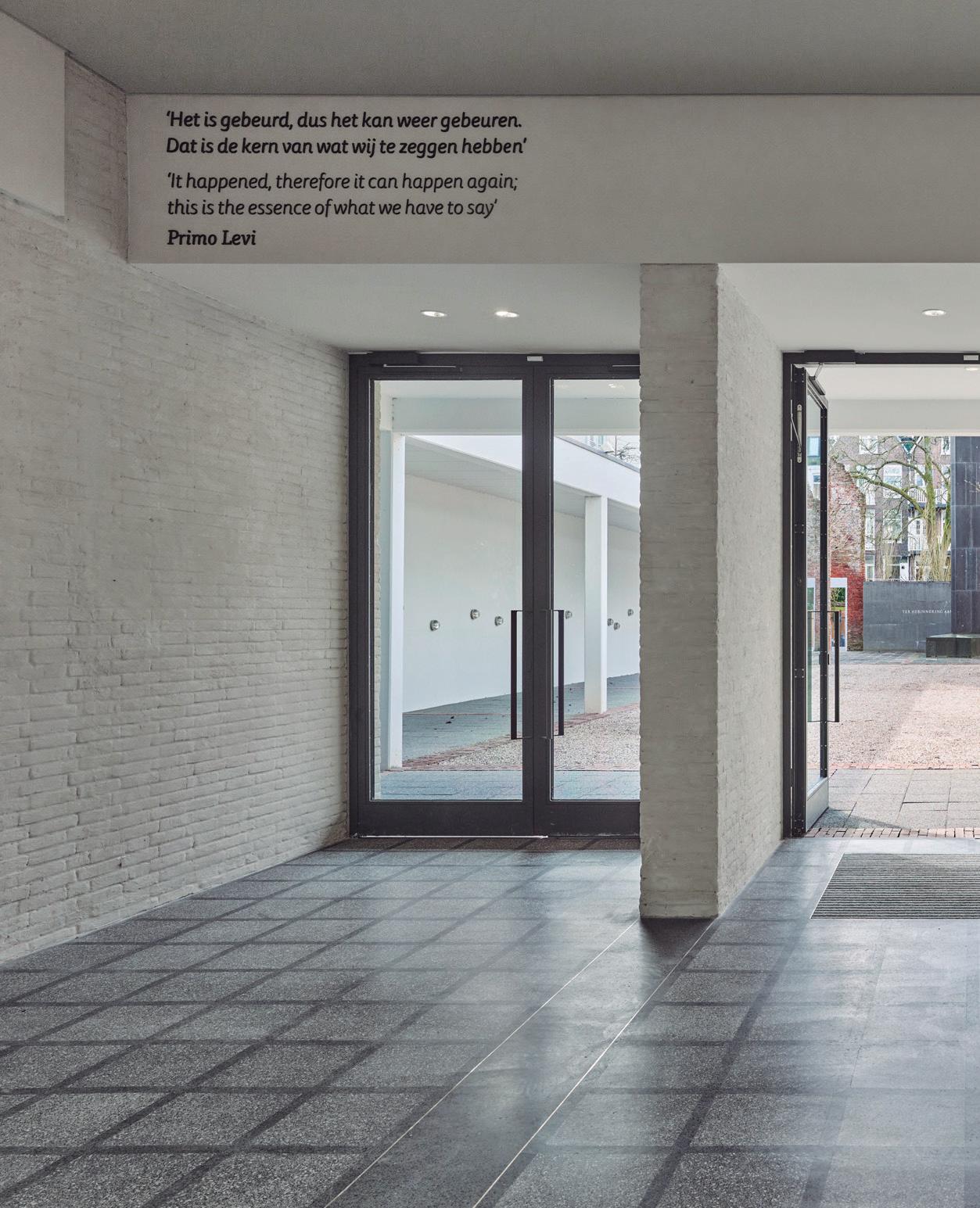 The white-painted front façade, which revealed 25 layers of paint, was carefully repaired. Following the restorative approach adopted for the building, the colours were returned to those introduced by Leupen in 1962, and the memorial space on the site of the demolished hall was renewed. A new connection was established between the memorial space and the garden in the back. The original open connection between the street and the memorial was turned into a welcoming reception area, while the upper floors now host the museumâs educational rooms. The goal throughout was to strengthen the buildingâs identity as a memorial, updating it only where necessary to meet contemporary visitor, safety, and accessibility standards.