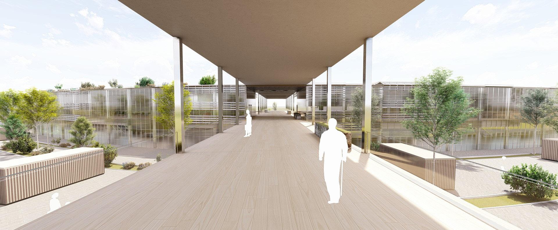 La solución adoptada por nuestro equipo fue la creación de un Master Plan donde proyectamos edificios de usos múltiples, fomentando así la actividad en el área a lo largo del día. Creamos un tamiz de espacios de uso público, semipúblico y privado.