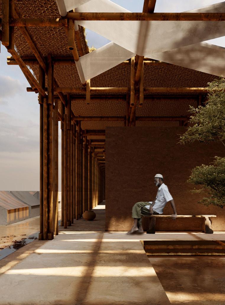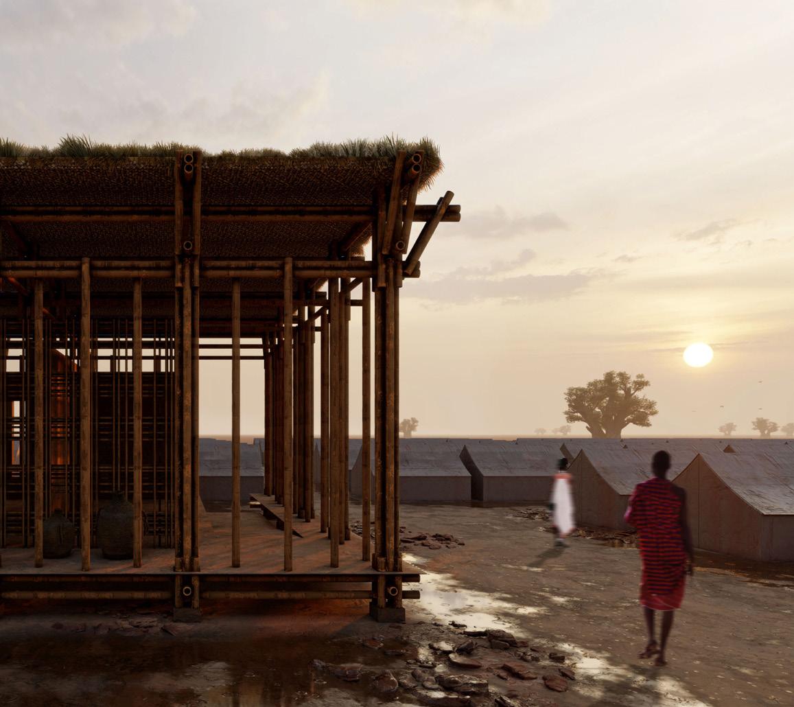 Una arquitectura horizontal con cubierta de palma, refleja la espacialidad de las regiones del Sahel y la Savannah. Un límite entre el vacío y el espacio edificado. “En un momento, todo se vuelve nada”. El objetivo era dar respuesta a cualquier emergencia con una arquitectura flexible, adaptada al paisaje y siguiendo las tipologías constructivas tradicionales con grandes espacios de interacción.
