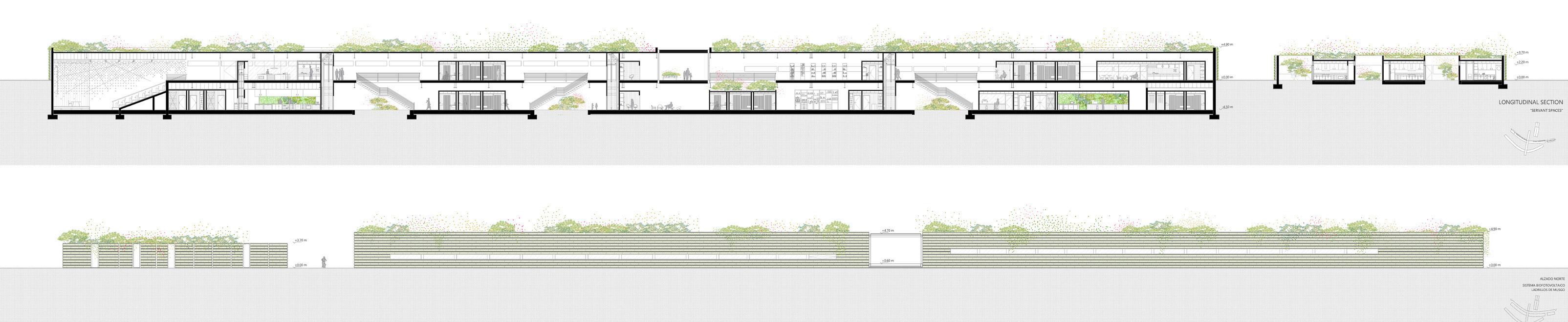 Un volumen singular pretende abrazar los vacíos urbanos desocupados y en mal estado y, al mismo tiempo, coser la brecha socio espacial que define este barrio con su entorno.