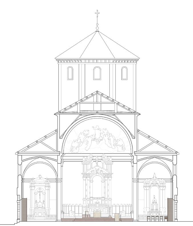5_Elementos de madera La madera utilizada para los nuevos filtros de ingreso, donde también se encuentran embebidos los confesionarios, busca la continuidad cromática con el coro existente.