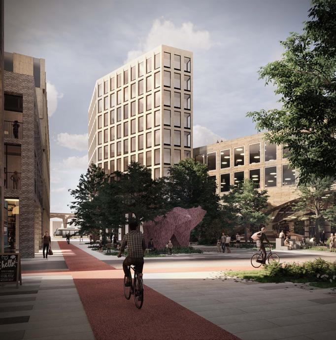 La línea de carril bici propuesta conduce al paso subterráneo y conecta con el centro financiero y la actual estación de trenes.