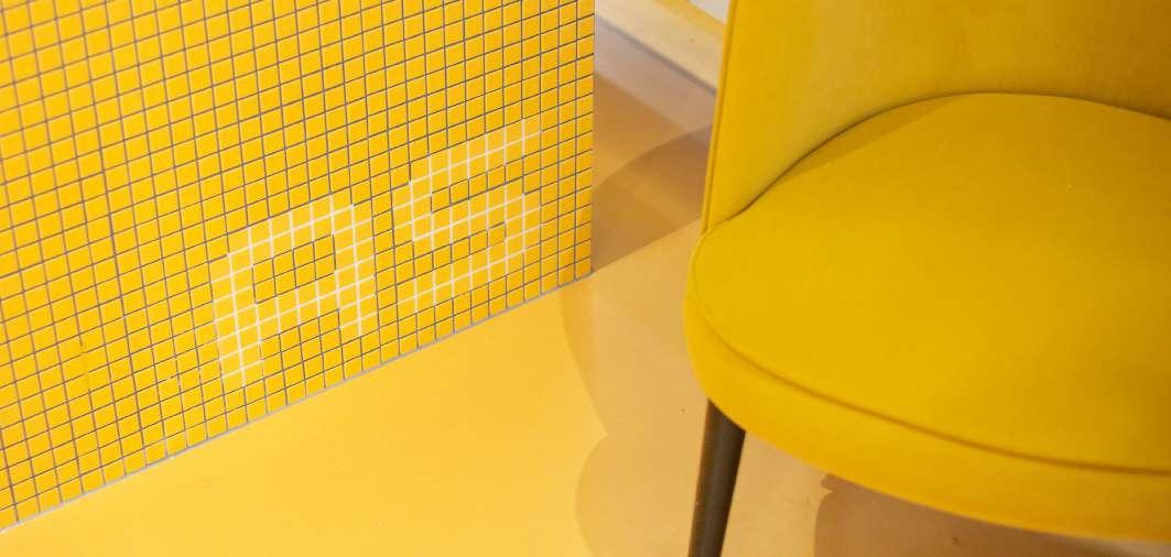 De lunchroom biedt een unieke beleving door de combinatie van tactiele materialen en een energieke kleurenpalet. Bezoekers kunnen genieten van een aangename sfeer die zowel ontspannend als opbeurend is. De zorgvuldige keuze van materialen maakt het interieur praktisch en onderhoudsvriendelijk, terwijl de speelse gele accenten en het comfortabele lichtgrijze meubilair bijdragen aan een fijne en verfrissende ervaring. Deze ruimte is de ideale plek voor een gezellige lunch of een moment van rust met een kop koffie.
