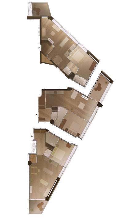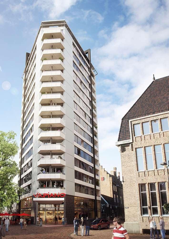 Het project betreft de transformatie van een kantoorpand naar appartementen. Op de begane grond zijn een aantal commerciële ruimten gebleven. Het brede gedeelte van het wigvormige gebouw wordt ontsloten middels een corridor. Aan de achterzijde is een galerij tegen het gebouw geplaatst om de woningen in het smalle gedeelte te ontsluiten. Rond het gebouw zijn balkons aangehangen om alle woningen een buitenruimte te geven. Verder is het pand is opgetopt met één laag appartementen met rondom ruime terassen die uitzicht bieden op het duingebied en de achterliggende havens van Scheveningen.
