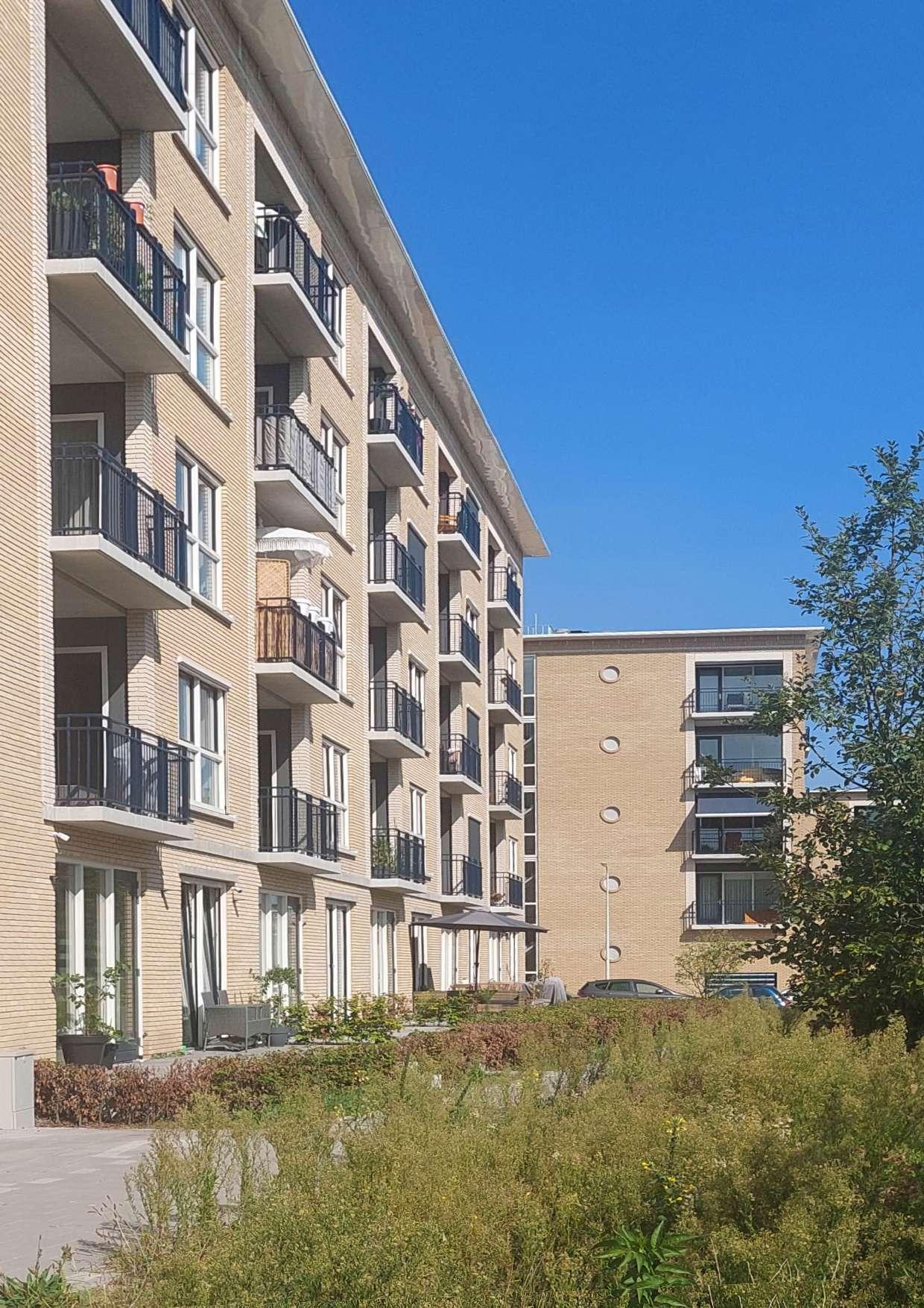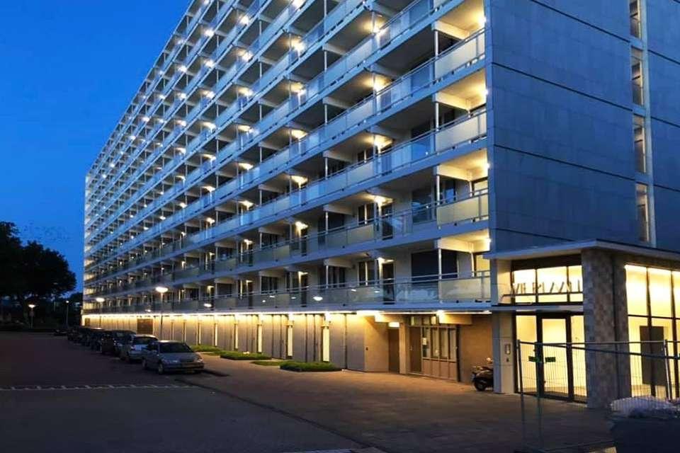 De Prinsessenflats in Rotterdam hebben een grondige renovatie ondergaan, met een focus op het verbeteren van de buitenruimten en de actieve plint. Deze gerenoveerde seniorenflats zijn voorzien van breder galerijen en balkons, wat de gebruikskwaliteit aanzienlijk verhoogt. De uitbreiding van de balkons maakt ruimte voor een tafel met vier stoelen, waardoor de bewoners nu comfortabeler kunnen genieten van hun buitenruimte. Het ontwerp, met strakke betonelementen en een subtiele variatie in diepte, draagt bij aan de visuele aantrekkingskracht van de flats. De vernieuwde plint, met de toevoeging van zorgwoningen, een scootmobielruimte en verbeterde bergingen, versterkt de veiligheid en functionaliteit van de woonomgeving.