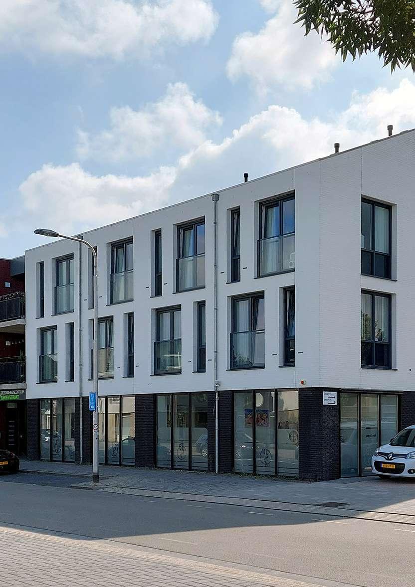 In het kantoorpand zijn 12 woningen gerealiseerd, 10 ruime appartementen en 2 penthouses. De woning hebben een oppervlakte van 120m² of meer en iedere woning beschikt over een terras, balkon of tuin en er wordt een gemeenschappelijke tuin gecreëerd. Onder het appartementengebouw komt bevindt zich de parkeerkelder met inpandige bergingen en een fietsenstalling.