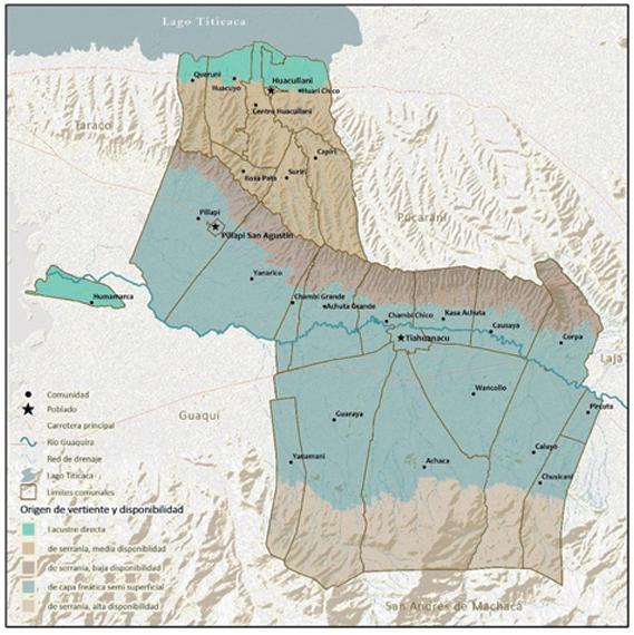 En el caso del municipio de Tiahuanacu el acceso a este recurso es de vital importancia debido a que un 67,6% de las familias viven de la ganadería y un 27% de la agricultura. Si bien cuentan con agua permanente en el Lago Titicaca y el río Guaquira no son muy aptos para su uso.