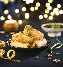 Crispy spring rolls with a delicious vegetable filling.2Samosas with spiced vegetable filling.1 An Indian style snack made with fresh onions and blended with authentic spices. FESTIVE - BUFFET AND SHARING PLATTERS CENTRAL FOODS DUCK SPRING ROLLS 50 x 25g CODE: LA5465 £15.50 per case 3 3 DALOON VEGETABLE MINI SAMOSAS 80’s CODE: LA1909 £11.15 per case 1 DALOON ONION BHAJIS 50’s CODE: LA4950 £15.49 per case 4DALOON VEGETABLE MINI SPRING ROLLS 90’s CODE: HW0297 £10.10 per case 2 P 6 | ORDER LINE: 0121 526 8406
