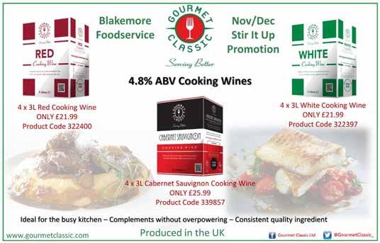 BLAKEMORE FOODSERVICE Head Office Depot, Serving Central & Southern Areas Steelman’s Road, Jamesbridge, Darlaston Wednesbury, West Midlands, WS10 9UZ Wakefield Depot, Serving Northern Areas Premier Park, Unit 3, Premier Way Wakefield, LS26 8ZA Split charges may be added where applicable. Offers are made subject to the knowledge of the owner or manager of the establishment concerned. All products featured are subject to availability and while stocks last. All prices are subject to VAT where applicable. Offers may not be applicable to public funded bodies or centrally negotiated accounts. We reserve the right to amend offers in the event of errors and omissions or unforeseen market fluctuations. To order call – 0121 526 8406 • foodservice.afblakemore.net Monday – Friday: 8am – 5pm/ Saturday: 8am – 3pm