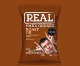 VAT FREE HIGH PROFIT ONLY 99 CALORIES PER PACK GLUTEN FREE 100% VEGETARIAN 100% GLUTEN FREE MAXIMISE IMPULSE SALES! ORDER TODAY CODE DESCRIPTION PACK SIZE PRICE PER CASE 307567 REAL Hand Cooked Crisps Sea Salt 35g £7.99 307658 REAL Hand Cooked Crisps Strong Cheese & Onion 35g £7.99 307574 REAL Hand Cooked Crisps Sea Salt & Cider Vinegar 35g £7.99 307575 REAL Hand Cooked Crisps Roast Ox 35g £7.99 307577 REAL Hand Cooked Crisps Sweet Chilli 35g £7.99 341275 Animal Adventures Original Flavour Snack 18.9g £7.99 341276 Midland Snacks Traditional Pork Scratchings 12 X 40g £48.50 REAL FREE POS