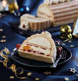FESTIVE - DESSERTS & BAKING INGREDIENTS A moist chocolate log split and sandwiched with rich chocolate fudge, the Yule log is covered with more fudge and sprinkled with sweet sugar dusting. A heavenly flavour combination of white chocolate cheesecake and dried raspberry pieces on a digestive biscuit base. Beautifully finished with a raspberry swirl and white chocolate chunks. Three layers of chocolate sponge filled with vanilla frosting and cherry sauce. Masked in a cherry flavour chocolate fudge icing and side decorated with freeze dried cherry pieces and cocoa nibs. 1 3 2 4 MADEMOISELLE DESSERTS CHOCOLATE YULE LOG 2 x Whole (recommended 12 portions each) CODE: LA5173 £22.98 per case 1 COUNTRY RANGE VEGAN BLACKFOREST FUDGE CAKE 1 x 14 Pre-portioned CODE: LA5125 £18.99 each £1.36 per portion 4COUNTRY RANGE WHITE CHOCOLATE & RASPBERRY CHEESECAKE 1 x 12 Pre-portioned CODE: LA2542 £13.49 each £1.13 per portion 3MORE FOODS PERSIAN LEMON CAKE 1 x 14pce CODE: LA5709 £14.99 each 2 P 16 | ORDER LINE: 0121 526 8406