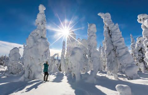 snow-capped hills, ice-covered lakes, and birch-laden trails, or go ice fishing, snowmobiling, or snowshoeing.