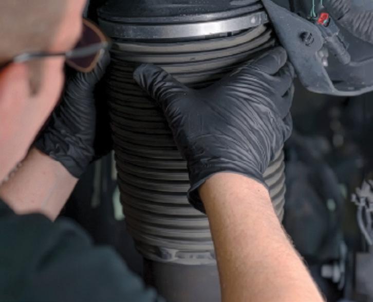 The OEX starter motor unit is sealed and has a customised drain/breather tube to help prevent water ingress and other contaminants.