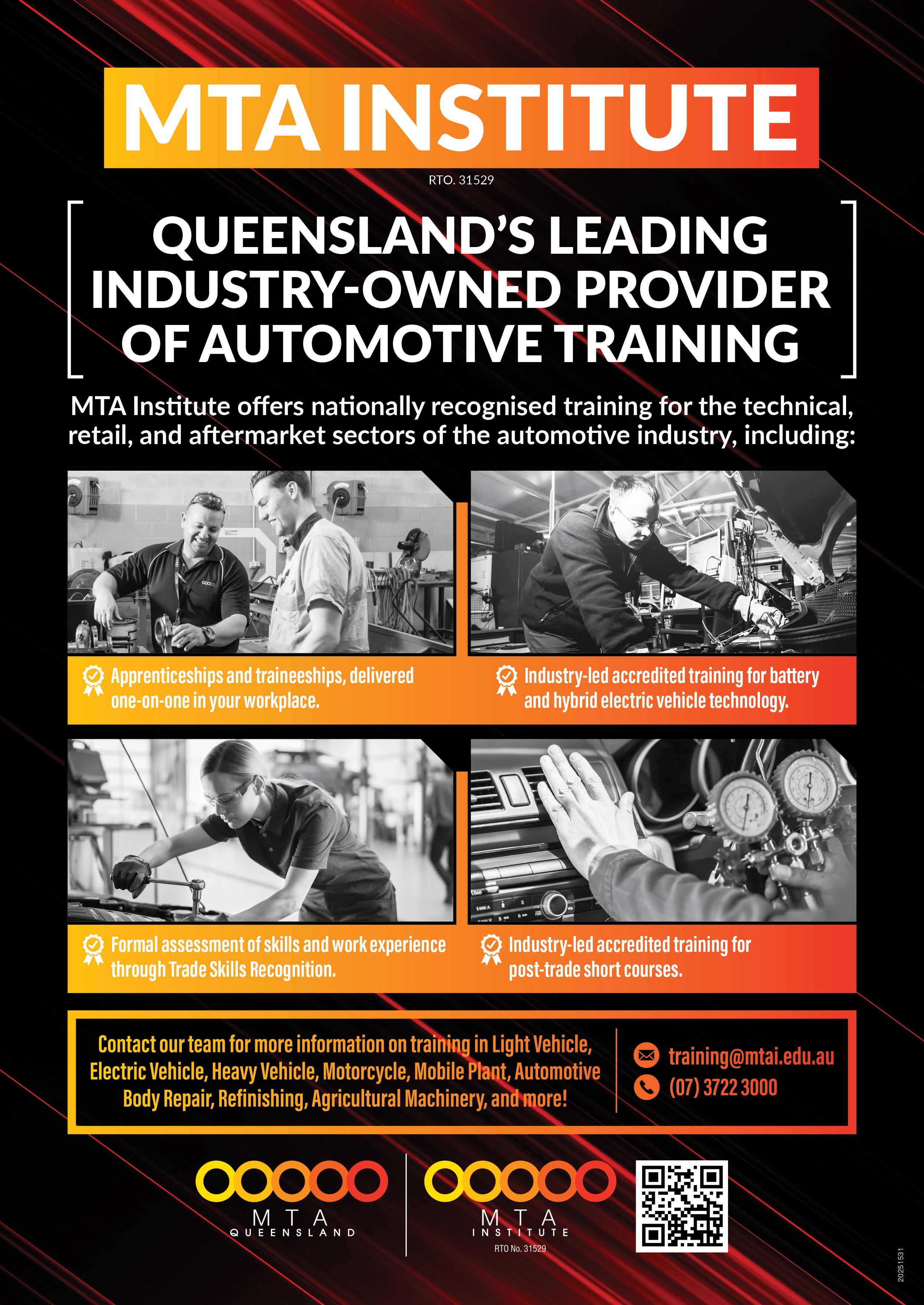 MTA Institute (Registered Training Organisation 31529) is Queensland’s leading industry-owned provider of automotive training and plays a critical role in developing the skilled workforce that underpins Australia’s automotive sector.