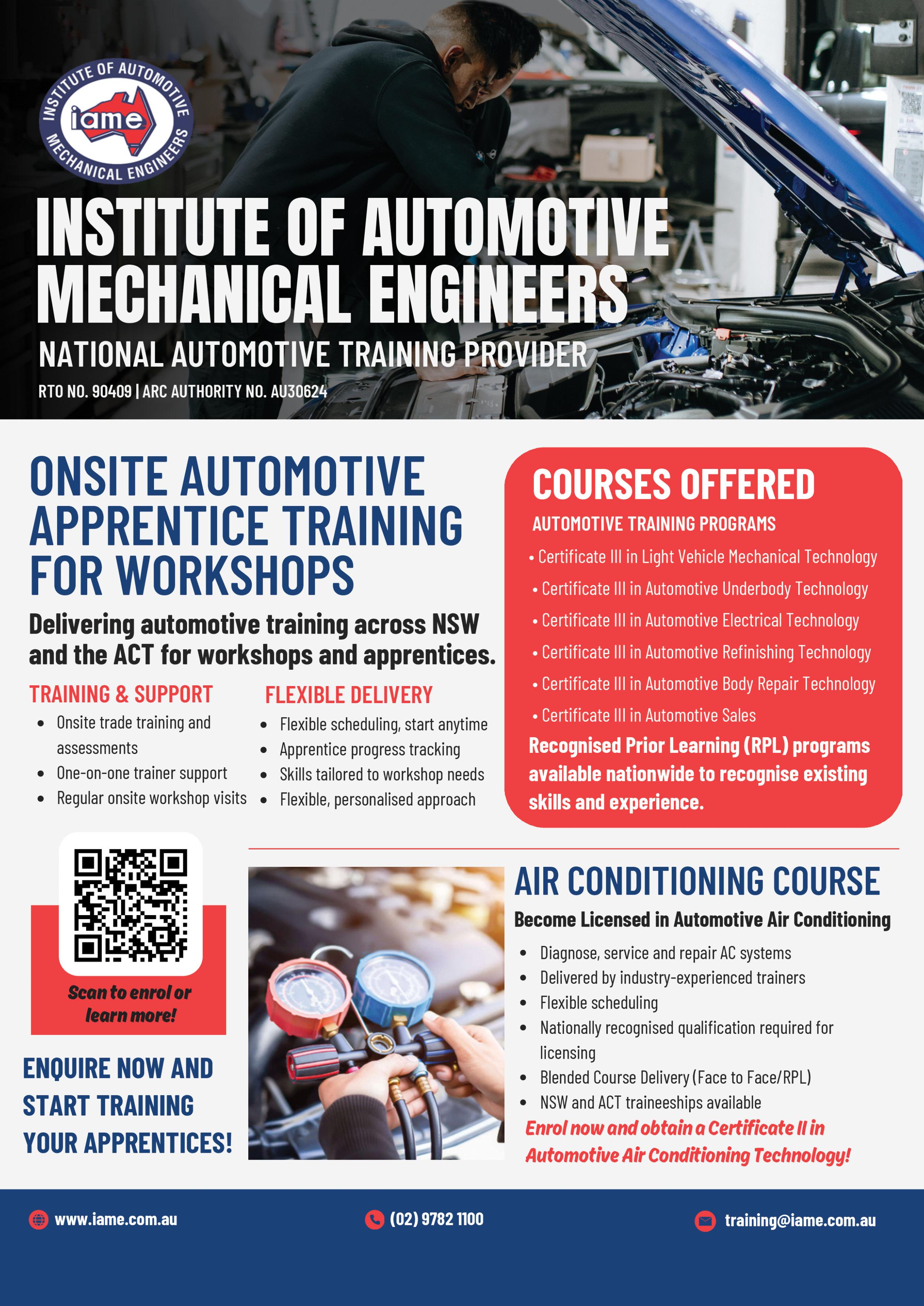 IAME said Australian workshops were changing with smarter technology, more complex vehicles and rising customer expectations – all demanding a new kind of technician.