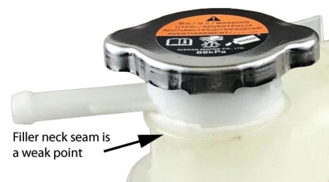 Adrad’s own brand aftermarket expansion bottle for this application has the filler neck moulded into the top of the bottle as a single piece to remove this weakness. The entire bottle is also made using a stronger