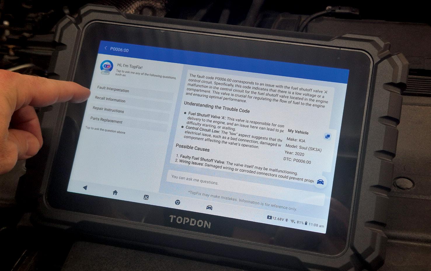 To TOPDON’s credit, the Hot Functions menu does a good job of showing what is available on that specific vehicle, even when you’re not completely sure if there’s a relearn or function you are supposed to do for that job.