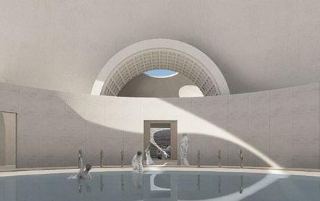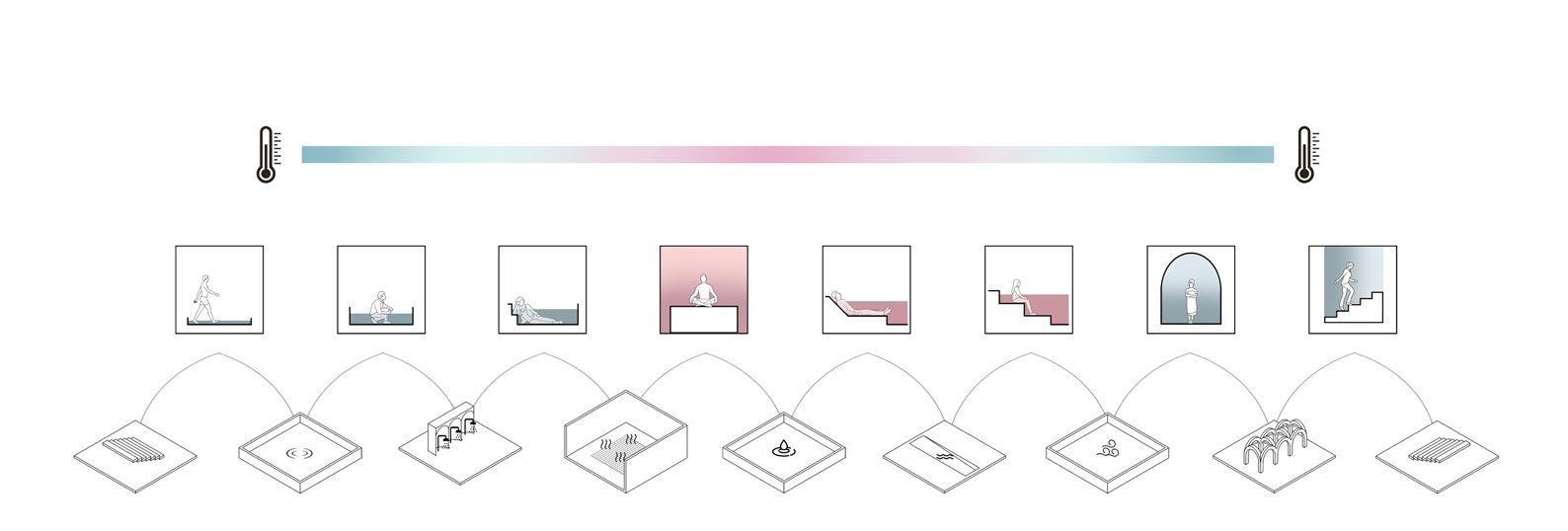 The Roman Baths were the source of inspiration for this project. Baths in ancient Rome were not only for bathing, but also for socializing. They even had libraries, gyms, art galleries, etc., and were a complex of entertainment and public activities in the city.