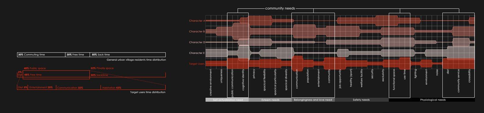 To decide the proportion of area and function segmentation by the distribution of time in different activities.Using the 8-hour workday as a basis, I explored the allocation of the remaining 16 hours of time to the average urban village resident, along with design goals and hopes for the target users.