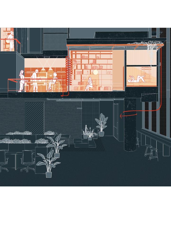 I want to design a co-living community where can promote human interaction to enhance the well-being of the users, a place of care