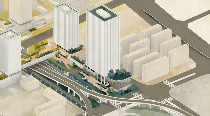 Treatment strategy Design a conspicuous node to serve people in and out of the city; while respecting and restoring existing derelict areas.