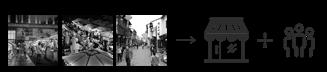 Utilizing the scene and form of ancient roadside markets, it breaks the traditional trade space where the vendors are inside and the customers are outside. This allows customers to freely enter and choose what to buy.