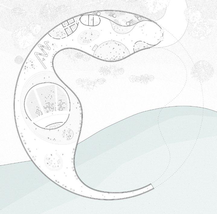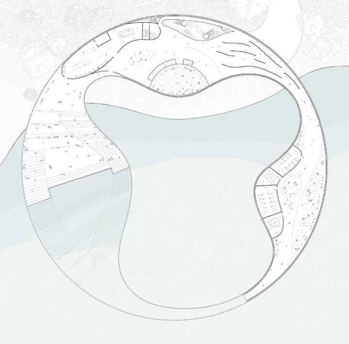 The building first evolves from a circular shape, and then multiple functional blocks are derived inward from the ring, and the building is adjusted to different heights according to the terrain and water level to adapt to the entire site.