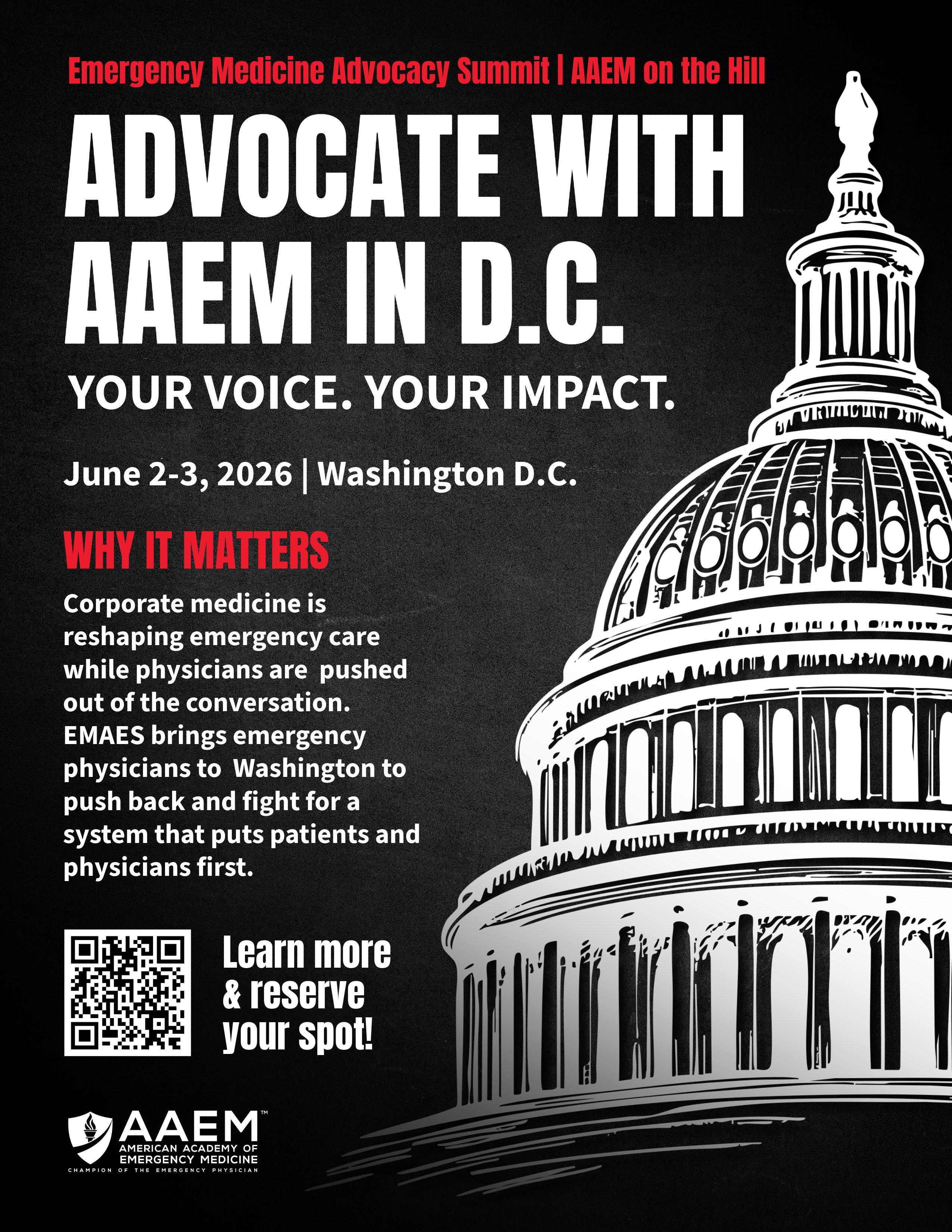 AAEM fights for high-quality patient care delivered by board-certified emergency physicians and champions a fair and equitable workplace for emergency physicians through advocacy and education.