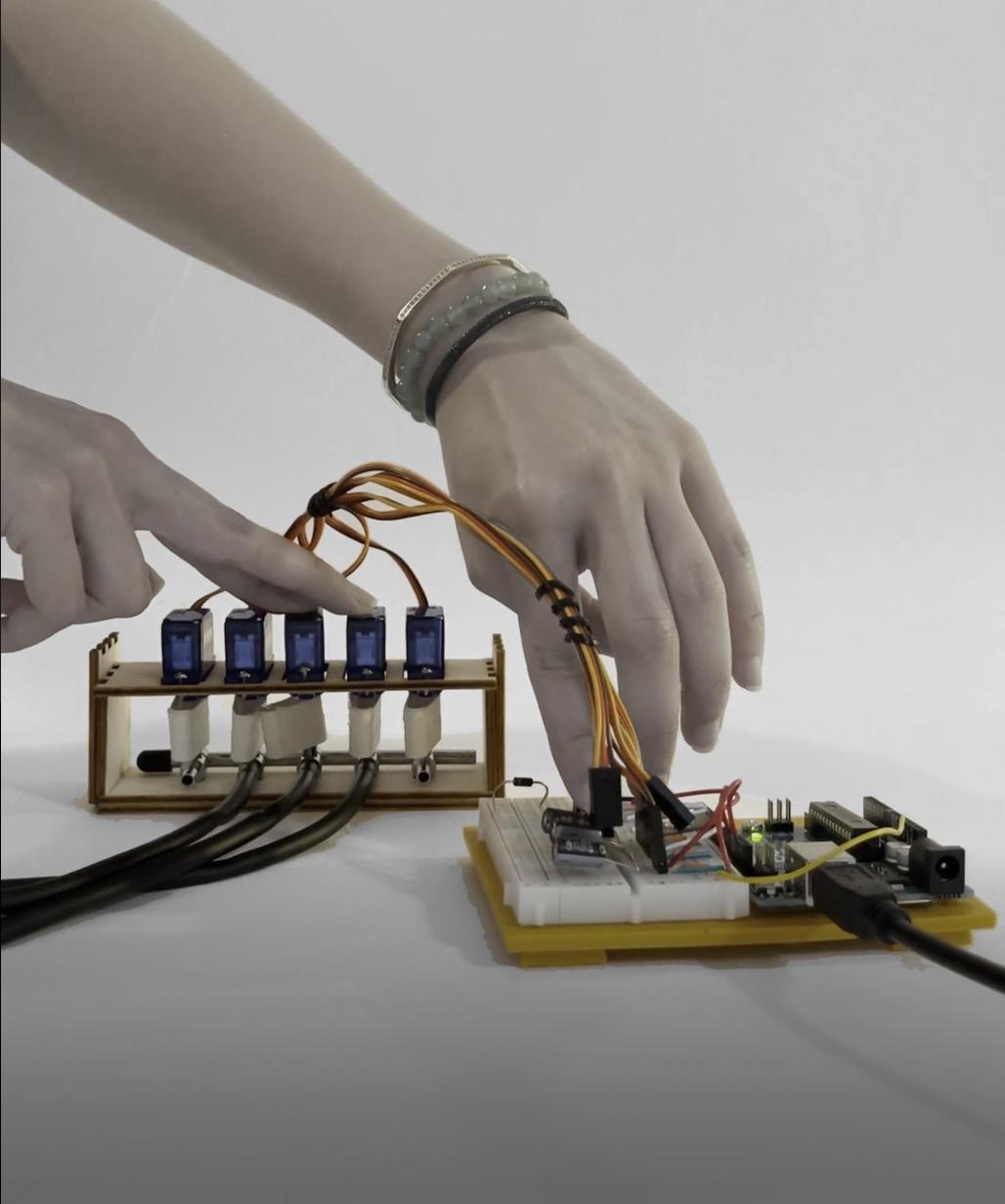 alyzing data sets. Additionally, data analysis and processing is presented via the tools of data mapping and a digital twin. In order to foster social interaction in the digital realm, Augmented Reality is employed, while its impact on inclusive design is explored. Lastly, particular emphasis is given in the physical dimension of the cyber-physical system, which entails the development of multi-stable kinetic structures that cater to a wide range of function. In particular, actuated origami structures are explored in conjunction with pneumatic mechanism, as the method of actuation. The aforementioned material system has been selected due to its lightweight and deployability.