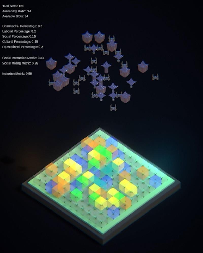 The inclusive strategies are implemented in a generative system, which seeks to distribute activities and physical resources (structures) accordingly. The distribution of activities and physical resources is aiming to influence the public space’s inclusivity in anticipation of future changes.